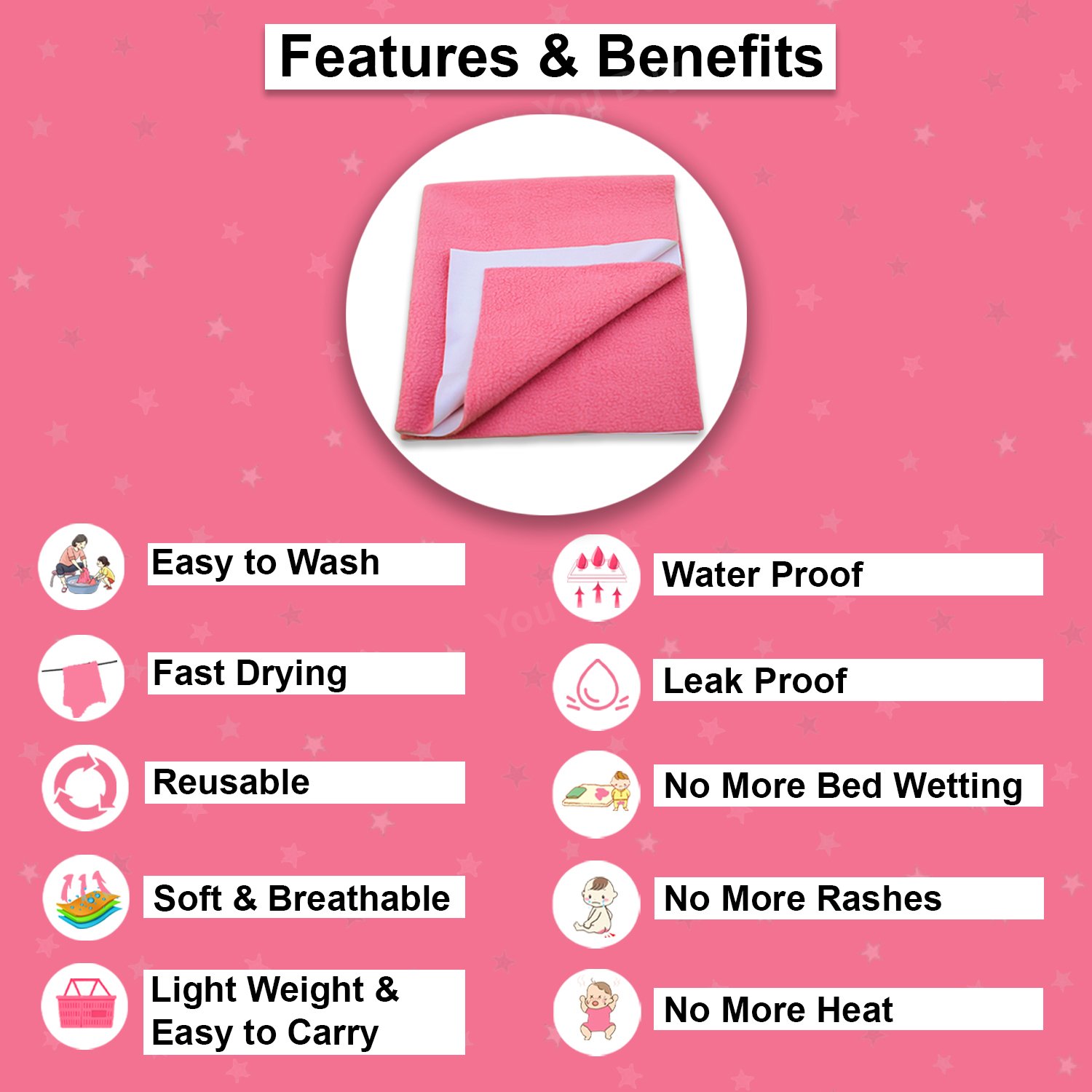 - Reusable and Eco-Friendly: The dry sheet for the baby is made to be reused. So by using our reusable waterproof dry sheet saves money and reduces environmental impact.