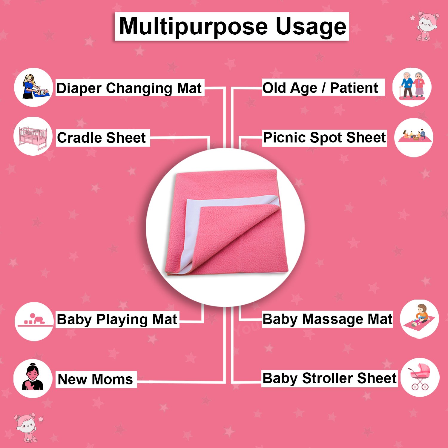 - Versatile Usage: Not just for beds, our baby dry sheet is versatile and can be used in cribs, strollers, travel seats, and more. Also, you can use this dry sheet as a diaper-changing mat for newborn babies & Baby massage mat. Wherever your baby sleeps or plays, our dry sheet for the baby provides reliable protection.